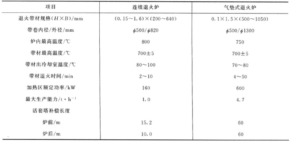 表4 连续退火炉与气垫式炉技术参数对比