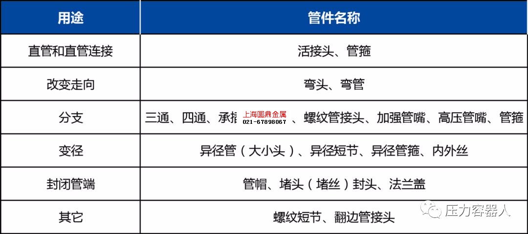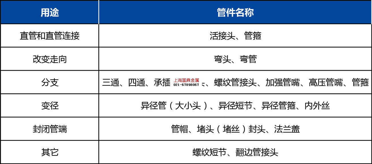 管件按用途分类