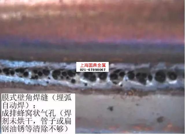 埋弧焊:出现成排蜂窝状气孔,