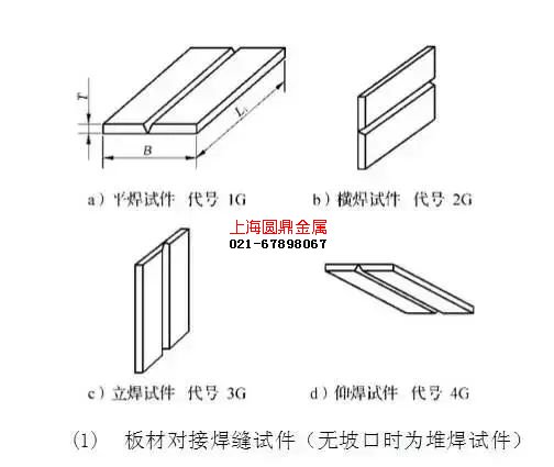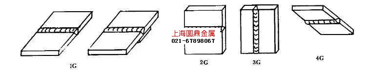 (1)平焊,代号1G;(2)横焊,代号2G;(3)立焊,代号3G;(4)仰焊,代号4G。