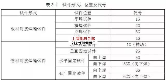 试件形式、位置及其代号见下表。试件位置基本决定了焊接位置。