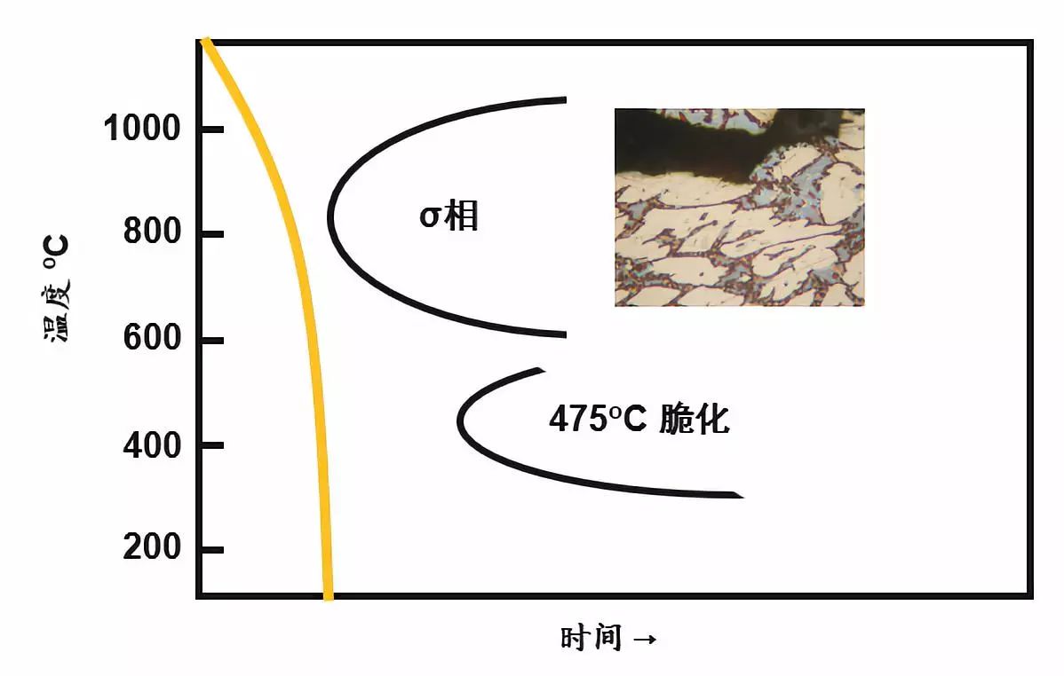 在生产和加工双相不锈钢过程中,必须避免σ相的形成。尽量缩短暴露在临界温度范围的时间。需要注意的地方包括: