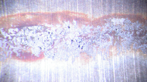 样品清理前存在回火色的区域,有非常严重的腐蚀