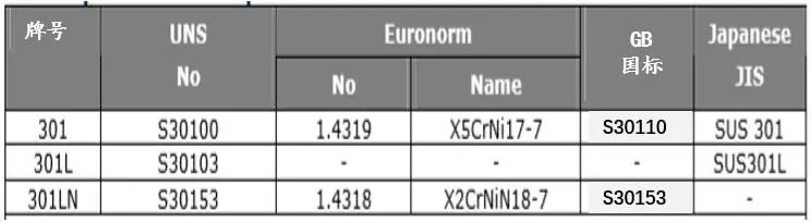 ASTM A666包含了这三个牌号,部分牌号也列入日本标准JIS G4305和欧洲标准Euronorm EN 10088-2。