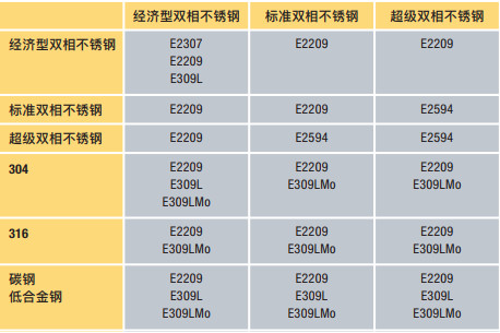 双相不锈钢可与其他双相不锈钢、奥氏体不锈钢、碳素钢和低合金钢焊接。