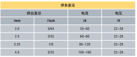 如表18所示,SMAW的焊接工艺参数基本上是焊条直径的函数。