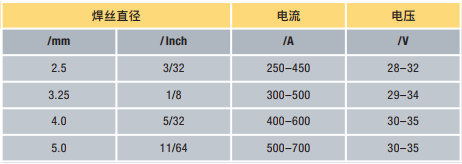 表19 用不同尺寸焊丝进行双相不锈钢埋弧焊 (SAW) 的典型参数