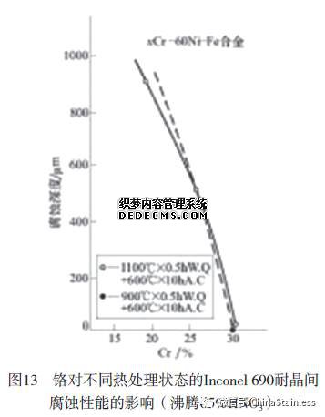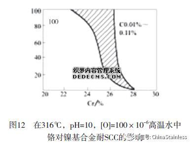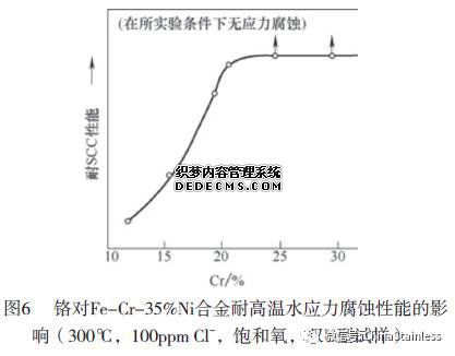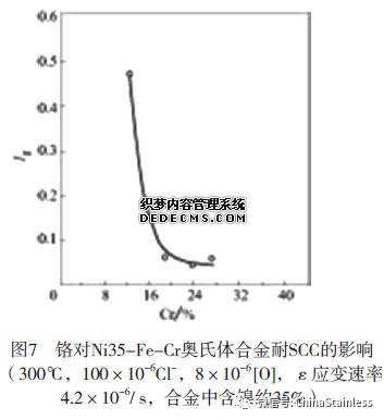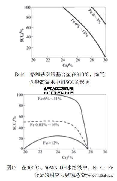 在Ni-Cr合金中,铁对提高合金在高温高压水中和高温NaOH溶液中耐SCC性能有明显的改善作用,因此Inconel 690合金必须含有10%左右的铁。铁的益处见图14和图15。